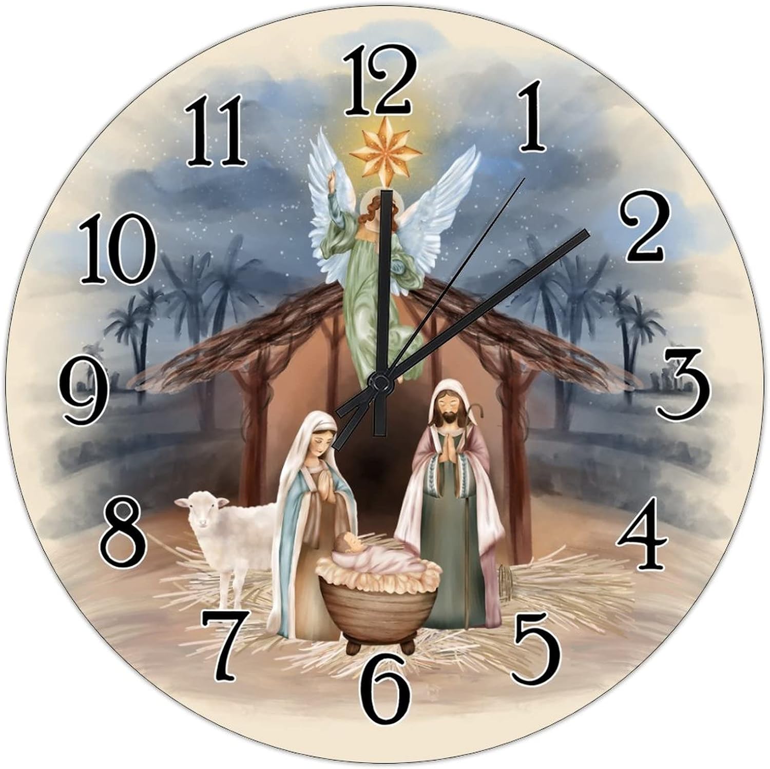Merry Christmas Christian Gift Decorative Wall Clock Jesus is The Reason Nativity Scene Wooden Clocks Farmhouse Battery Operated Clocks Welcome Winter Xmas Round Clock for Bedroom 15inch
