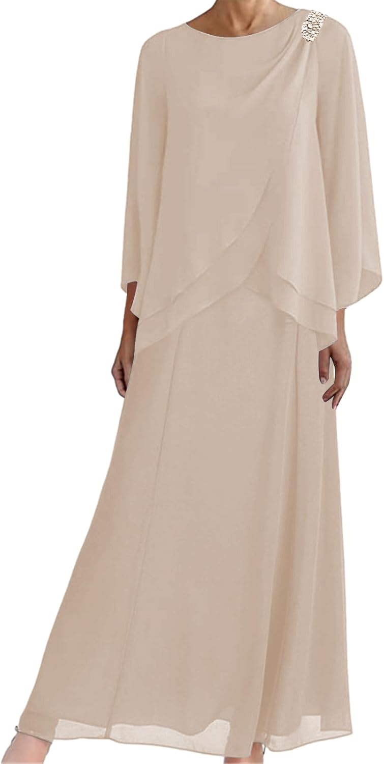 Mother of the Bride Dresses for Wedding Long Evening Formal Dress Chiffon Wedding Guest Groom Dresses Tiered Beaded Women'sItem DescriptionGender:Womens/Ladies,Teens/Teenager GirlsFabric:High Quality ChiffonFeatures:A Line,Scoop Neck,3/4 Sleeve,Tiered/Layered,Pleated/Ruched,Beaded/Crystal/Rhinestone,Long/Full/Floor Length,Zipper Back,Built-in BraCustomized ServicesCustomized Size and Color are also available,detailed measurements as follows:A.Bust _____ inchB.Waist _____ inchC.Hips _____ inchD.Hollow to floor(Without Shoes)______inchE.Height(Without Shoes)______inchF.Shoulder to Shoulder______inchG.Height of Shoes(Shoe Heel)______inchH.The date you need the dress_____